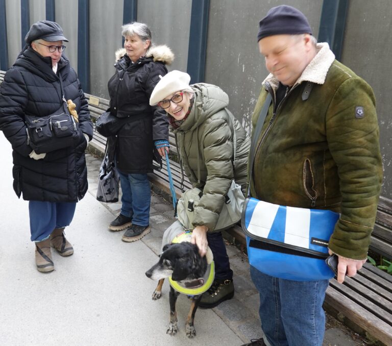 Dort begegneten wir auch einer Dame mit Assistenzhund. Sie erzählte uns, dass sie diesen Hund mit sechs Jahren vom Tierschutzhaus übernommen und ihn wegen einer eigenen Behinderung selbst ausgebildet hatte. Er ist mittlerweile zehn Jahre alt geworden und darf ihr als Assistenzhund jederzeit hilfreich zur Seite stehen.